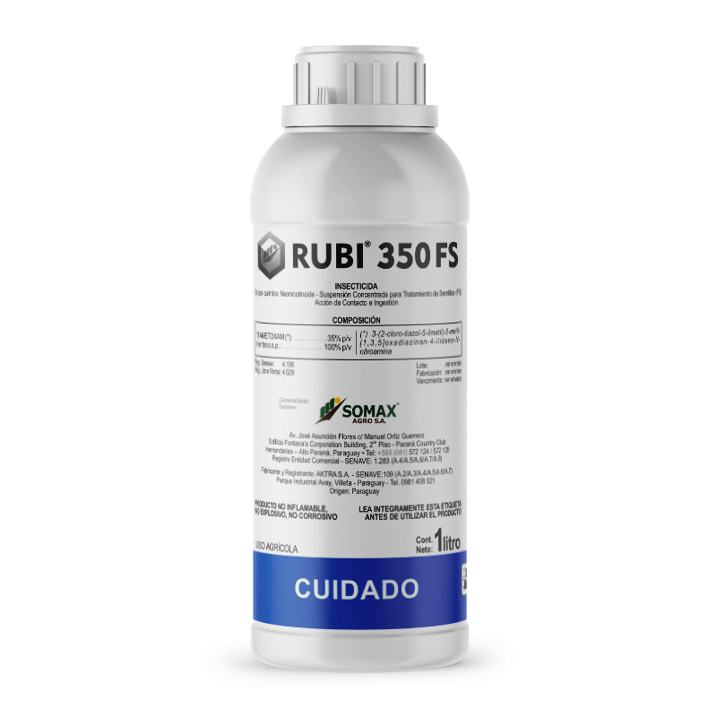Rubi 350 FS es un insecticida de amplio espectro, con actividad residual, es absorbido por la raíz de las plantas, siendo luego transportado en forma ascendente, de esta manera protege la semilla y la parte aérea de la planta, del ataque de los insectos del suelo y contra insectos que se alimentan succionando savia de la planta. No produce retraso en el crecimiento de las plántulas en germinación. Actúa por contacto e ingestión, pero por su forma de aplicación, solo afecta a los insectos que atacan el cultivo.